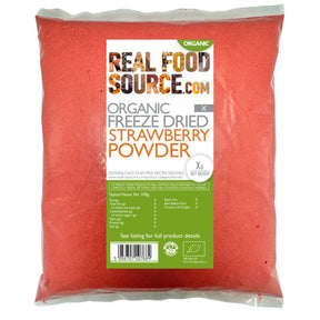 1kg of fresh ripe strawberries is used to make 100g of our organic freeze dried strawberry powder. It is a great way to increase fruit intake in the diet and can even be hidden into foods, which is good for those fussy eaters!