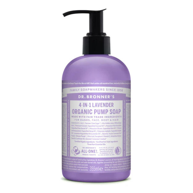 4-in-1 Organic Pump Soaps are good for washing hands, face, body & hair & place by your sink or in the shower! To wash hair work one pump of Organic Pump Soap into wet hair until it lathers, then rub and rinse. Repeat for thicker or longer hair. After washing, follow up with a lightly acidic conditioning rinse, like Dr. Bronner's Citrus Organic Hair Rinse to leave hair silky smooth! Don't have our Organic Hair Rinse? Use diluted apple cider vinegar or lemon juice! OK!