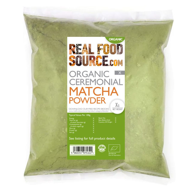 Matcha green tea has many claimed health benefits including boosting energy and metabolism and improving skin health. As ever, here at the RealFoodSource we always encourage customers to do their own research.