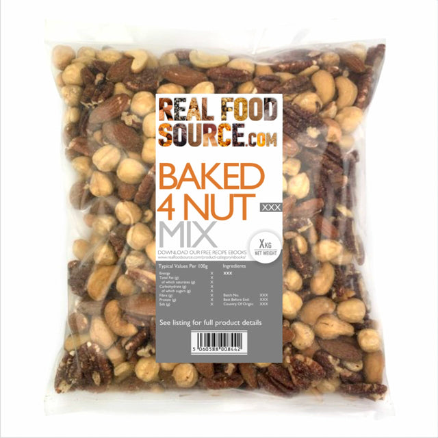 Our excellent baked 4 nut mix is a perfect nut selection containing cashew nuts, almonds, hazelnuts and pecans. Our delicious nut mix contains all the goodness of the individual nuts in a convenient mix. Full of omega-3 fatty acids from the almonds, bursting with vitamin E from the hazelnuts and a great source of potassium, manganese from the pecans and antioxidants including Alkylphenols from the cashews.