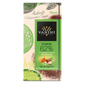 Vanini Single Origin Peru Dark Chocolate Bar 62% with Chopped Hazelnuts, Caramel and Salt