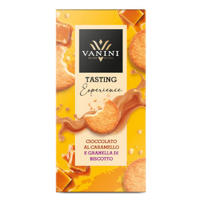 The Vanini Tasting Experience Caramel Chocolate Bar with Biscuit Grains offers a perfect balance between the sweet, creamy flavour of caramel and the crunchy texture of biscuit, creating a unique and satisfying taste experience.